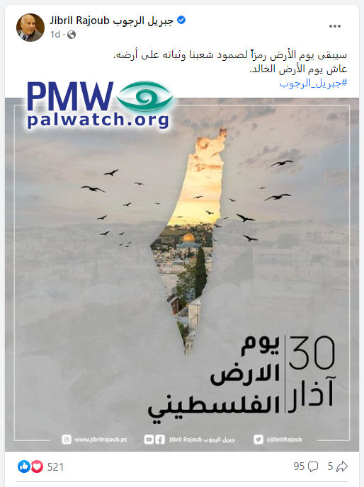 Posted text: “Land Day will remain a symbol of our people’s resolve and its adherence to its land.