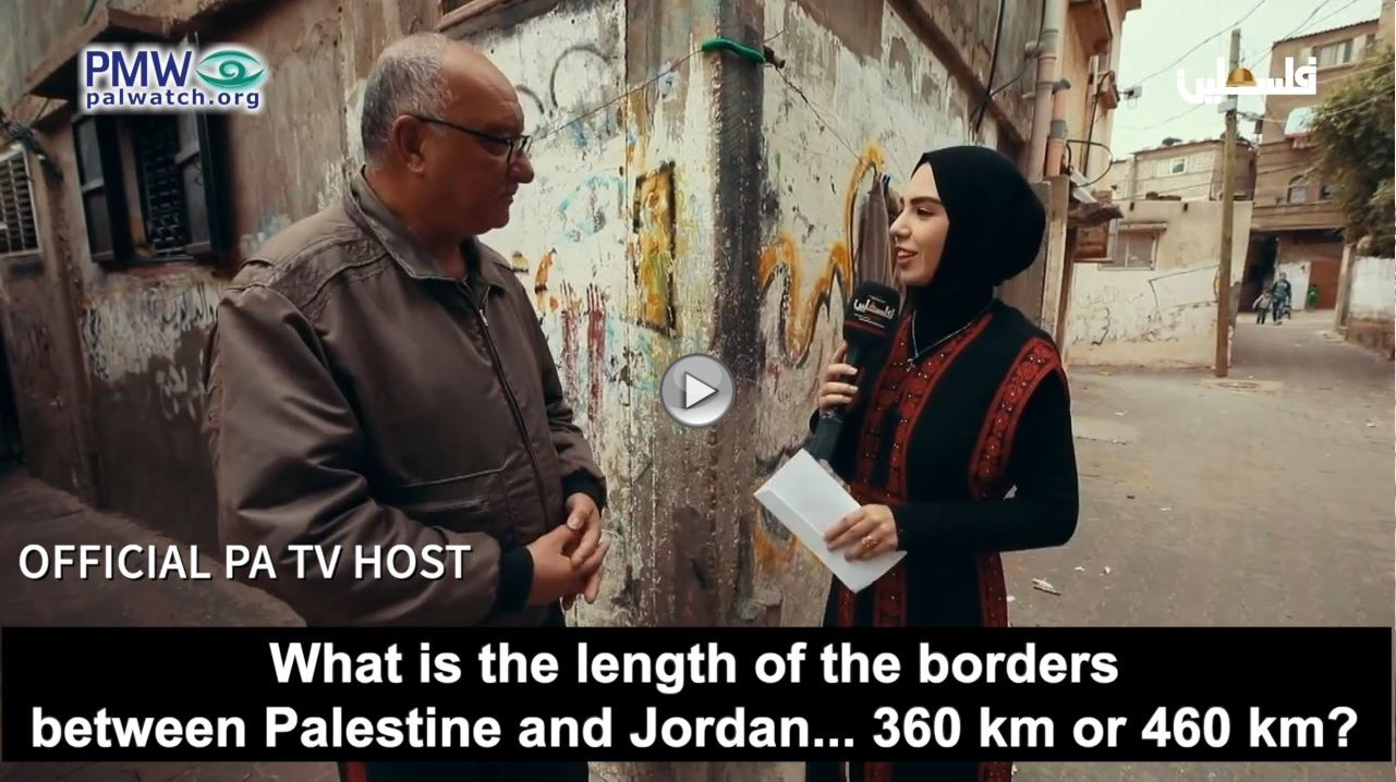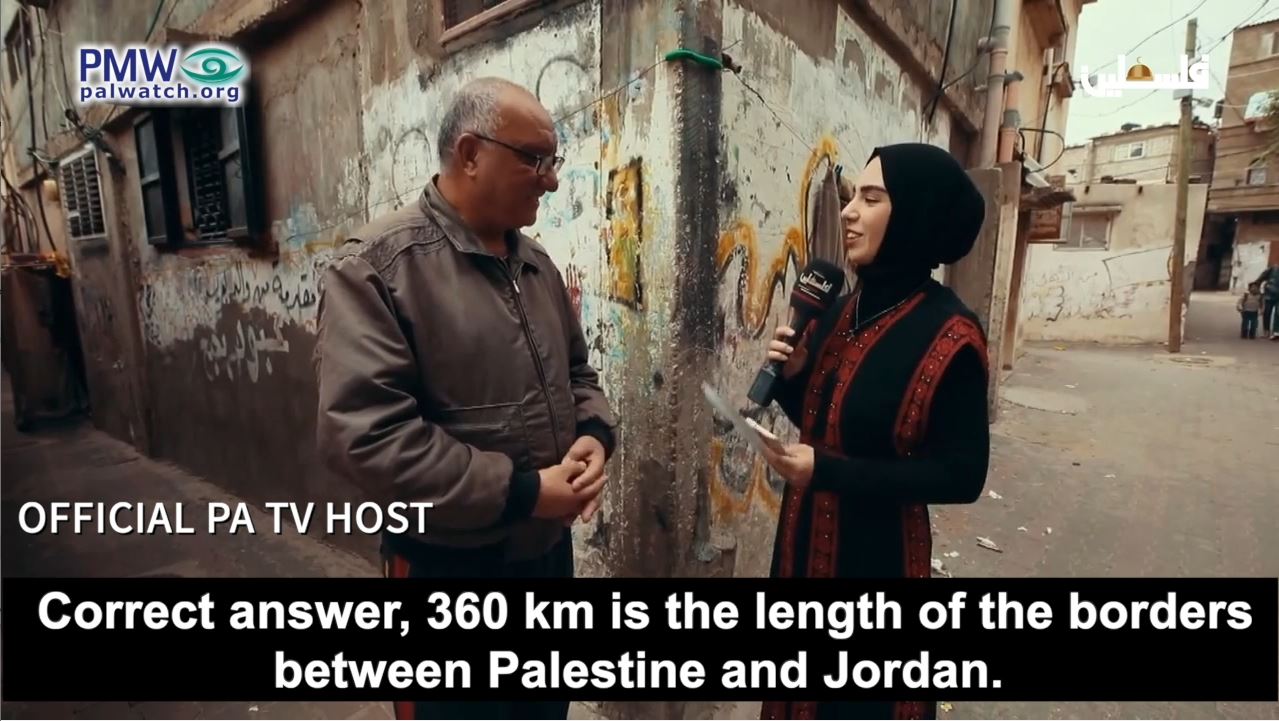 Official PA TV host: “What is the length of the borders between Palestine and Jordan… 360 km or 460 km?”