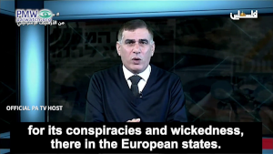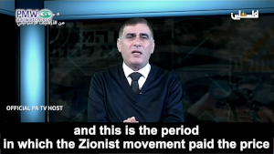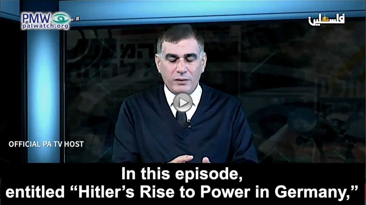 Official PA TV host: “In this episode, whose title is “Hitler’s Rise to Power in Germany,” we’ll talk about the very sensitive periods between 1929 and 1935. This is the period in which Zionism was diminished and nearly ended and disappeared… The preparations began leading to World War II in Europe, and this is the period in which the Zionist movement paid the price for its conspiracies and wickedness, there in the European states.”