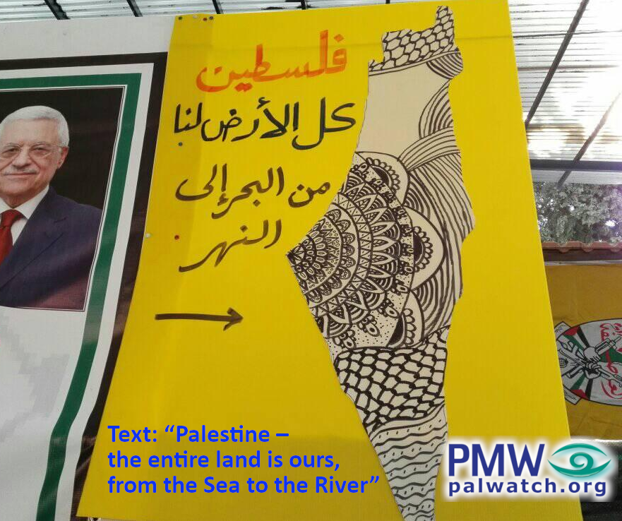 Text: “Palestine – the entire land is ours, from the [Mediterranean] Sea to the [Jordan] River”]