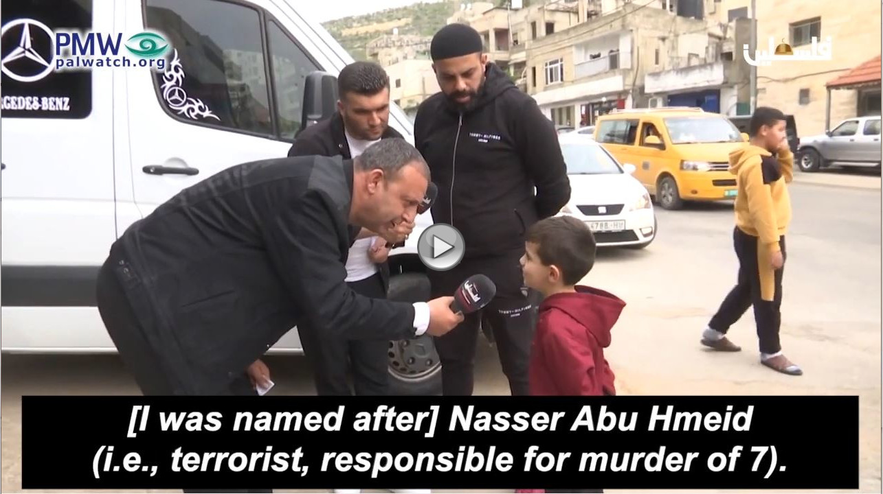 Child: “[I was named after] Nasser Abu Hmeid (i.e., terrorist, responsible for murder of 7).”