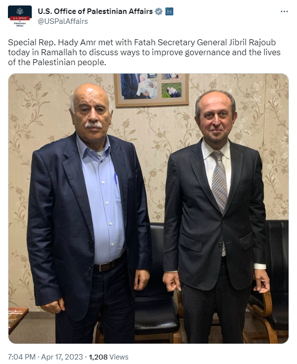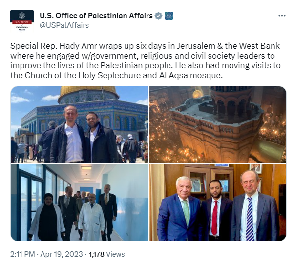 [Twitter account of the U.S. Office of Palestinian Affairs, April 19, 2023]