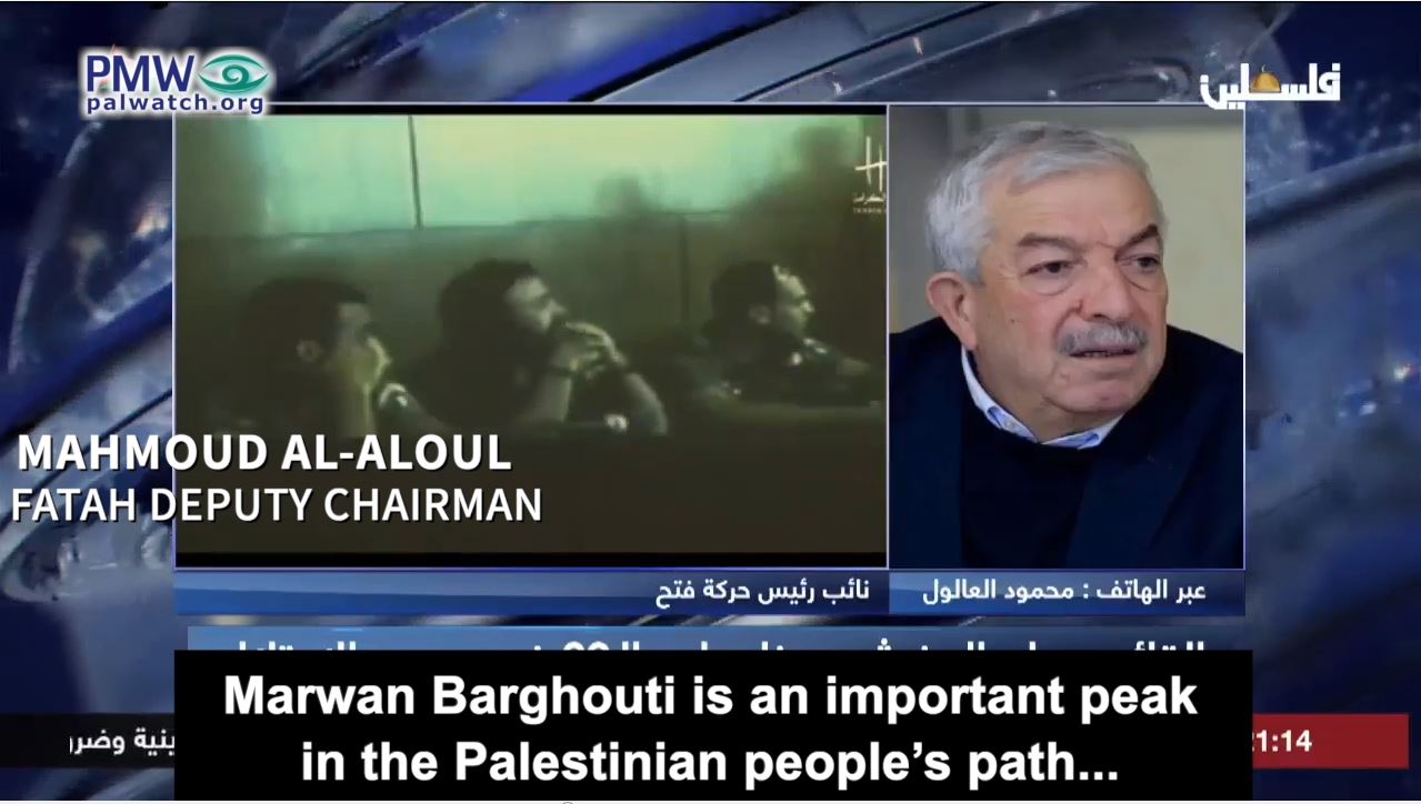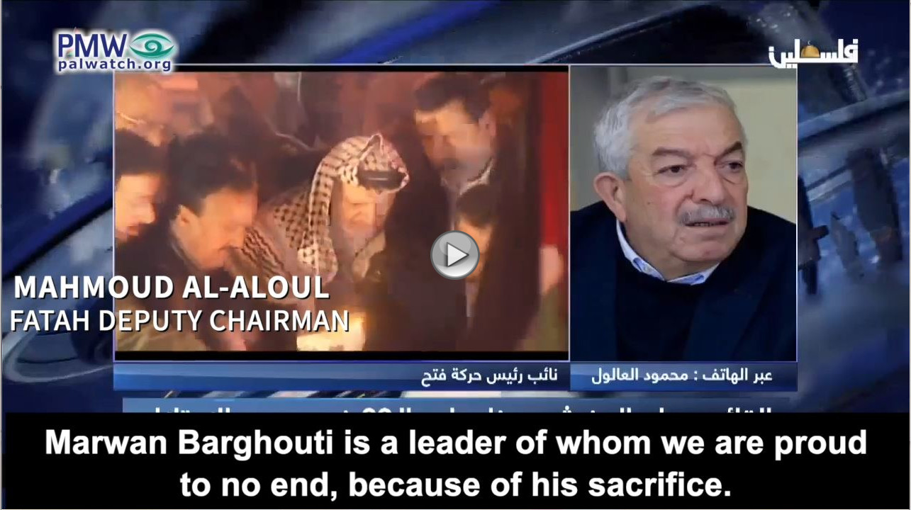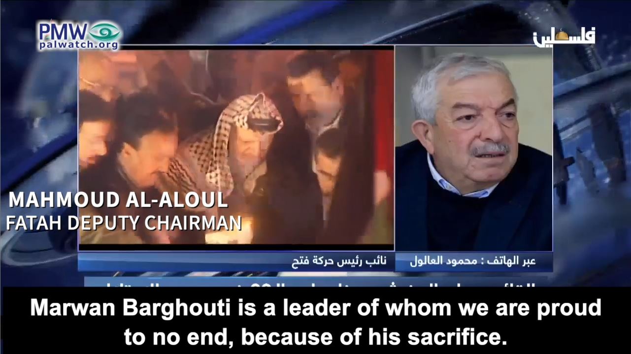 Fatah Deputy Chairman Mahmoud Al-Aloul: “Blessings to beloved and precious Marwan Barghouti (i.e., terrorist, orchestrated murder of 5), the [Fatah] Central Committee member, the extraordinary leader, on the 22nd anniversary of the occupation kidnapping (i.e., arresting) him. There is no doubt that Marwan Barghouti, from our perspective, from the perspective of the story of the Palestinian struggle, Marwan Barghouti is an important peak in the Palestinian people’s path... Marwan Barghouti, the leader of the Palestinian people’s masses, the leader of the [second] Intifada…Marwan Barghouti is a leader of whom we are proud to no end, because of his sacrifice.”