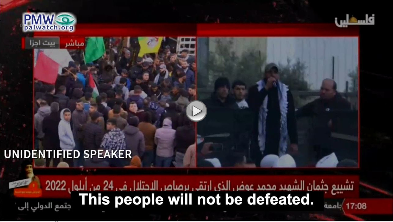 PA official TV recently broadcast a funeral at which a speaker said: “We love death like our enemies love life.”