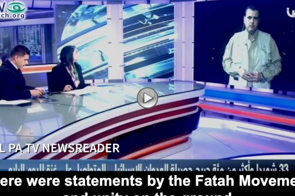 Official PA TV newsreader: “There were statements by the Fatah Movement and unity on the ground to confront this aggression on the Palestinian lands. For a long time, Fatah is the pioneer in armed struggle activity on the Palestinian lands.”