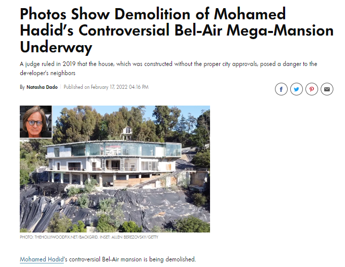 On Feb. 17, 2022, People Magazine reported on the demolition of a "Bel-Air Mega-Mansion" built by “Palestinian”-American real estate developer Mohamed Hadid, father of the self-appointed “Palestinian” model Bella Hadid. Since the mansion was built without the necessary building permits, there was no “ALERT” and no one really batted an eye. That is elementary law enforcement.