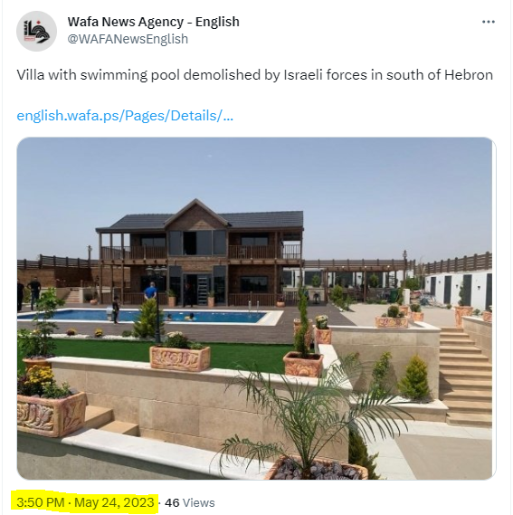 But when OCHA reports on an Israeli demolition, one immediately conjures images of some hard-done-by Palestinian losing the only rickety shack that provided him and his family comfort and respite from the elements. One certainly does not expect to see a huge mansion, landscaped gardens, and a pool to boot.