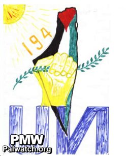 In the latest issue of December 2011, the editors chose to include two drawings of maps of "Palestine" that included PA areas as well as all of Israel under the Palestinian flag - a sign of Palestinian rule, political sovereignty and the elimination of Israel. One of the maps includes the image of a dagger being thrust through the map. The number "194" and the letters "UN" in the drawings refer to the PA's bid in September to become the 194th member state of the UN.