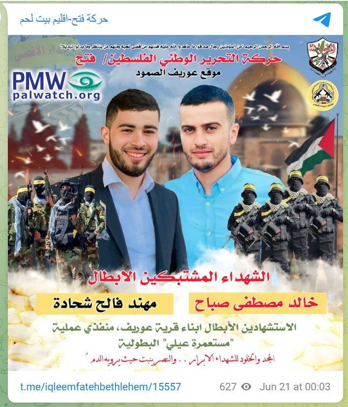 - victory grows where it is watered with blood”[Fatah Movement – Bethlehem Branch, Telegram channel, June 20, 2023]