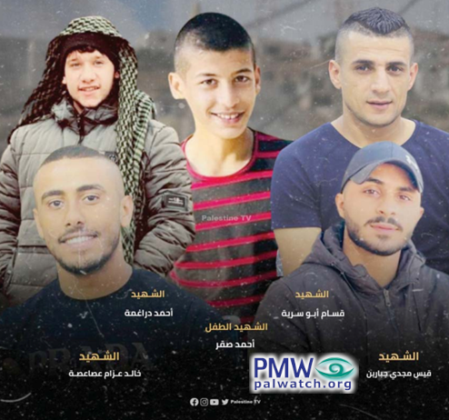 Following the death of the 5 Palestinian “Martyrs” in Jenin, the official PA daily praised them in a long and blunt headline, referring to terror hub Jenin as “the wellspring of Martyrdom,” and praising the terrorists – “the resistance” – for “shatter[ing] the myth of ‘the invincible [Israeli] army: