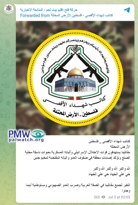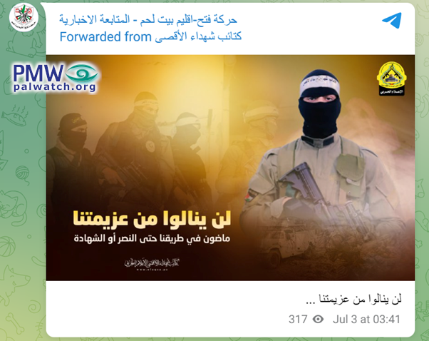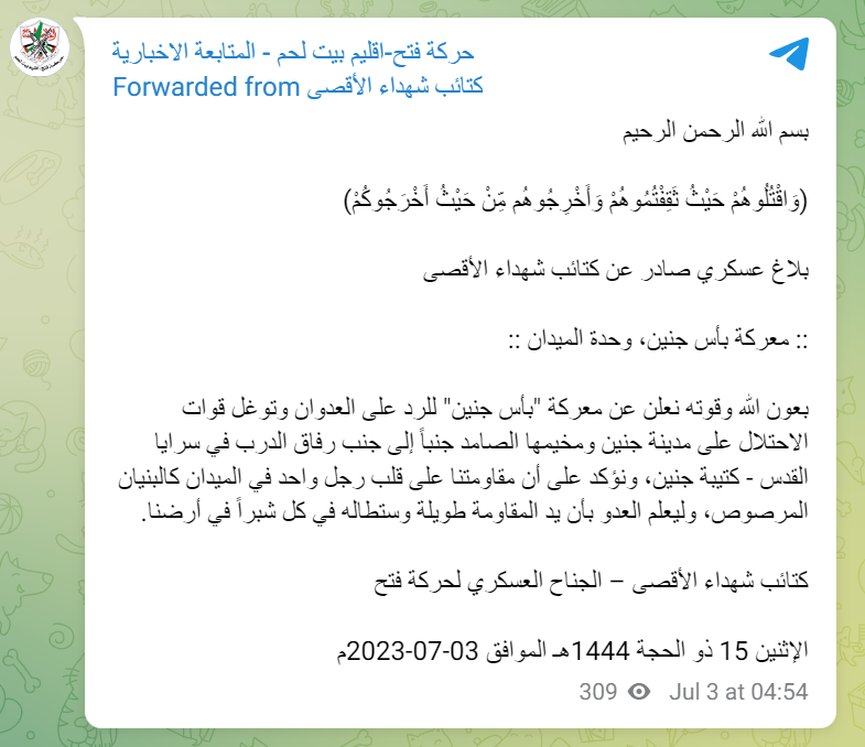 [Fatah Movement – Bethlehem Branch, Telegram channel, July 3, 2023]