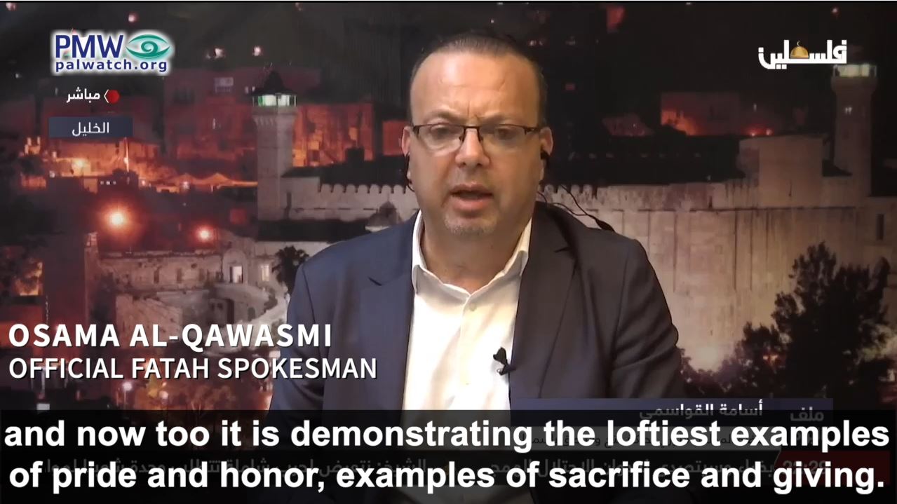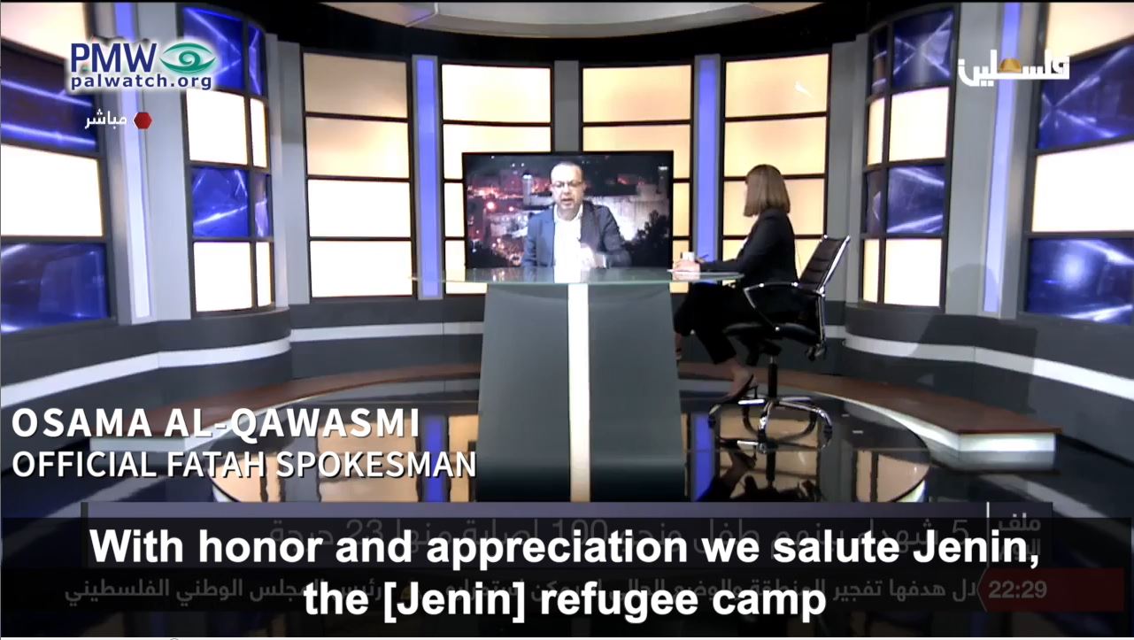 Official Fatah Spokesman Osama Al-Qawasmi: “We ask for mercy for the souls of the Martyrs. With honor and appreciation we salute Jenin, the [Jenin] refugee camp that abounds with honor and sends it to the entire Arab and Islamic nation. This refugee camp that we knew well in the second Intifada and first Intifada, and now too it is demonstrating the loftiest examples of pride and honor, examples of sacrifice and giving.”