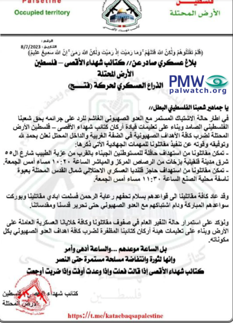 [Fatah Movement – Bethlehem Branch, Telegram channel, July 8, 2023]