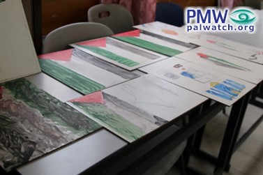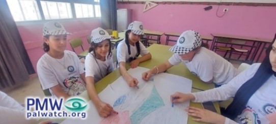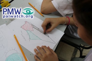 Children at the PLO summer camps draw the PA map of “Palestine” that erases Israel.