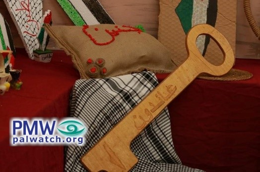 The large key in the colors of the Palestinian flag above, represents what the PA calls the refugees’ “right of return.”