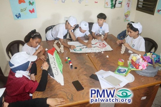 The children also paint the PA map that erases Israel on arts and crafts projects that they will be taking home.