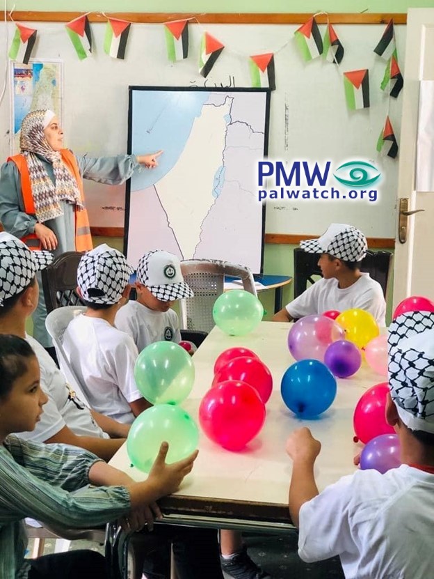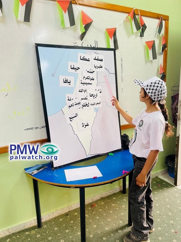 Every summer the Palestinian Authority summer camps actively indoctrinate children with the PA's hate and terror messages. One of the fundamental motivations for Palestinian hate and terror has always been Palestinian denial of Israel's right to exist. Even after the Oslo Accords, to its own people, the PA presents all of Israel as “occupied Palestine,” Israeli cities as “Palestinian cities” and the PLO/PA map of the world in which “Palestine” replaces Israel as an achievable goal.