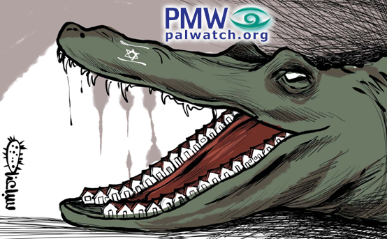 PMW documented a cartoon 20 years ago in which a crocodile with a Star of David is swallowing up a Palestinian man: