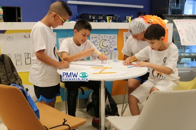 Posted text: “The hours of joy and creativity continue and are crowned with the talents of our children at the [PLO Supreme Council for Youth and Sports] children’s summer camp ‘Moons and Not Numbers’”