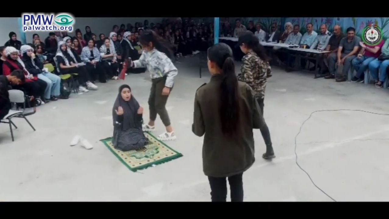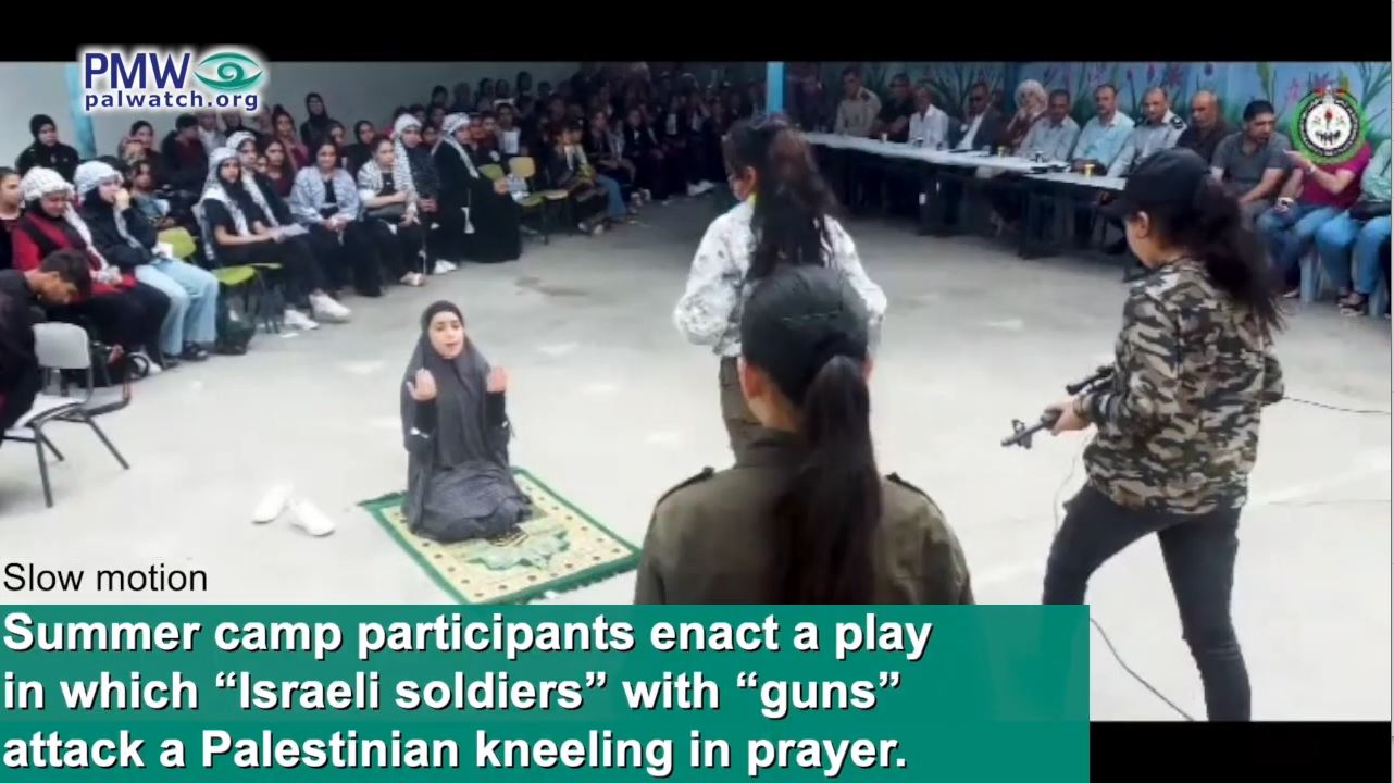 PA summer camp skit: "Israelis" attack Palestinian kneeling in prayer