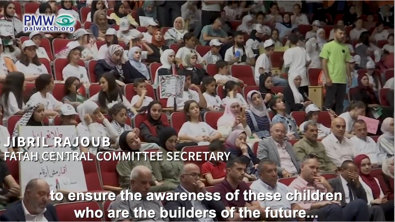 Summarizing the overall message of the camps, senior PA and Fatah official Jibril Rajoub, who is also the head of the PLO Supreme Council for Youth and Sports that ran the camps, stressed that dead terrorists are “moons,” “stars,” and “the elite.” They are “heroes” who are “recorded in our hearts,” he said, adding that it is crucial that they “remain in our memories” and that they are “honored.” Rajoub stressed that the purpose of the camps are in line with the “Palestinian national ideology to ensure the awareness of these children who are the builders of the future.” In other words: The camps are a teaching tool for the PA through which the PA leaders make sure their ideology and values – that terrorists are heroes and role models – continue to live on in the next generation: