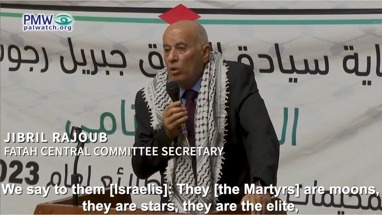 Fatah Central Committee Secretary Jibril Rajoub: “We established 648 [summer] camps in which 65,000 male and female [child] pioneers participated... These camps were established… on the principle of the Palestinian national ideology to ensure the awareness of these children who are the builders of the future… An additional [camp] topic connected to the shared slogan of these [Martyr] heroes, whose bodies are being held by these new Nazi fascists (i.e., Israelis)... We say to them [Israelis]: They [the Martyrs] are moons, they are stars, they are the elite, and they are the ones who sacrificed their lives. They were and will remain in our memories and in the memory of their children and their grandchildren... These [Martyrs] are recorded in our hearts.”