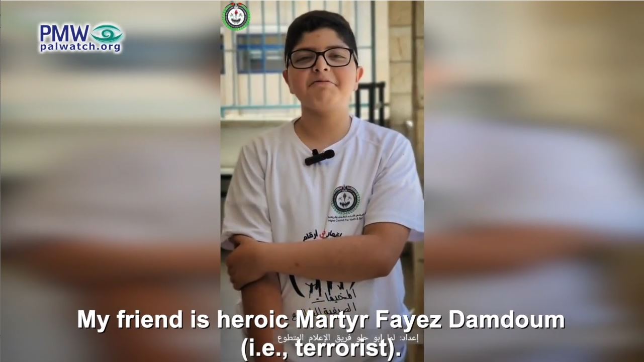 Boy 1: “My friend is heroic Martyr Fayez Damdoum (i.e., terrorist).”