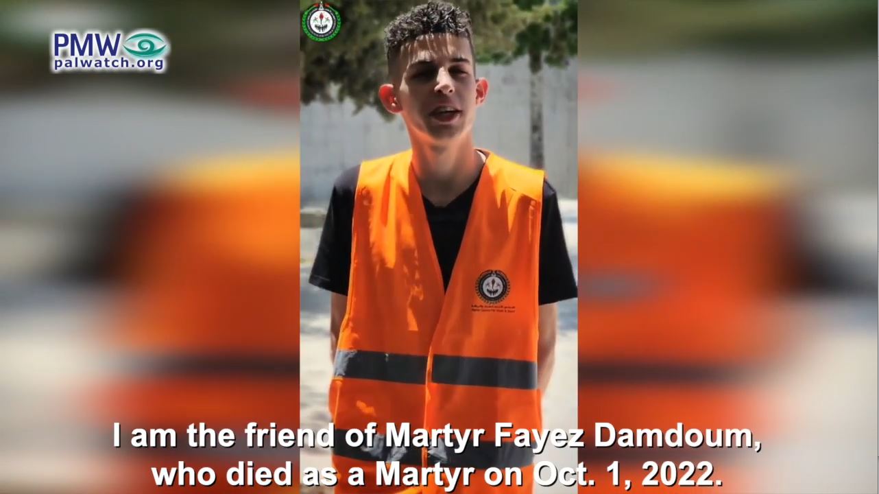 Boy 2: “I am the friend of Martyr Fayez Damdoum, who died as a Martyr on Oct. 1, 2022.”