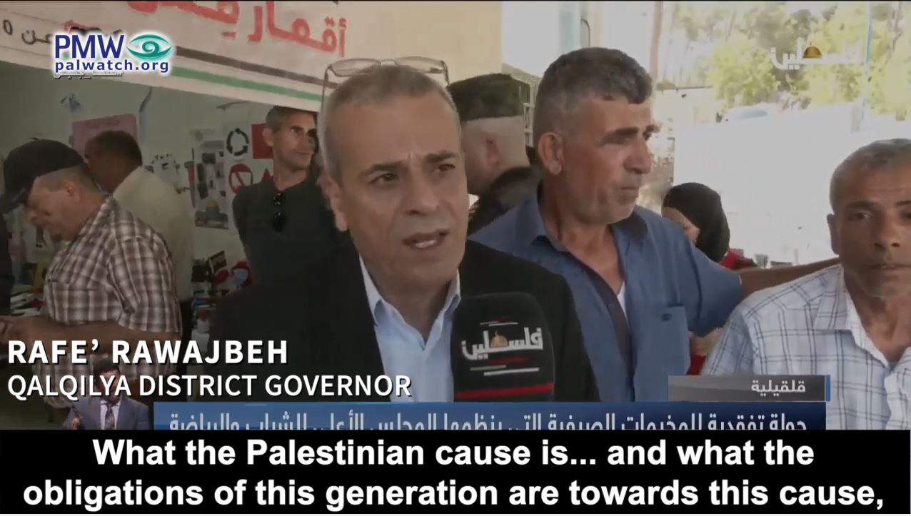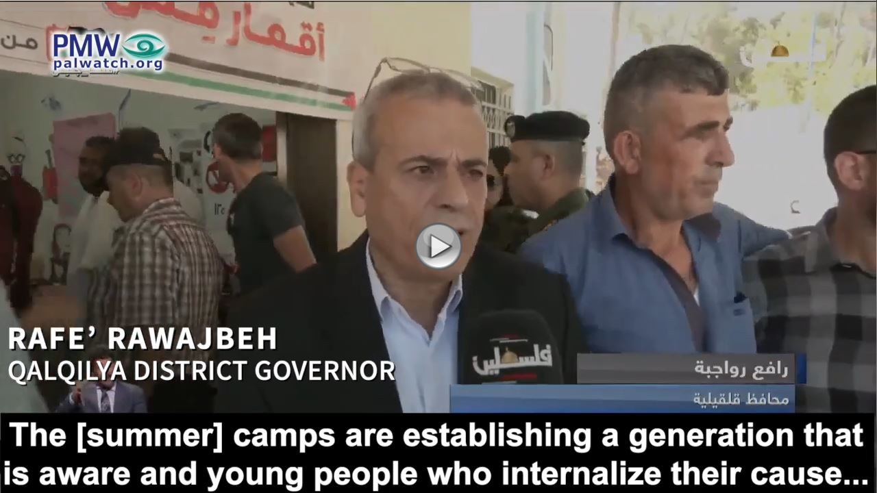 Qalqilya District Governor Rafe’ Rawajbeh: “The [summer] camps are establishing a generation that is aware and young people who internalize their cause… what the Palestinian cause is… and what the obligations of this generation are towards this cause, towards the liberation, independence, and establishment of our independent Palestinian state.”