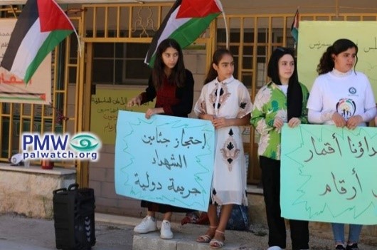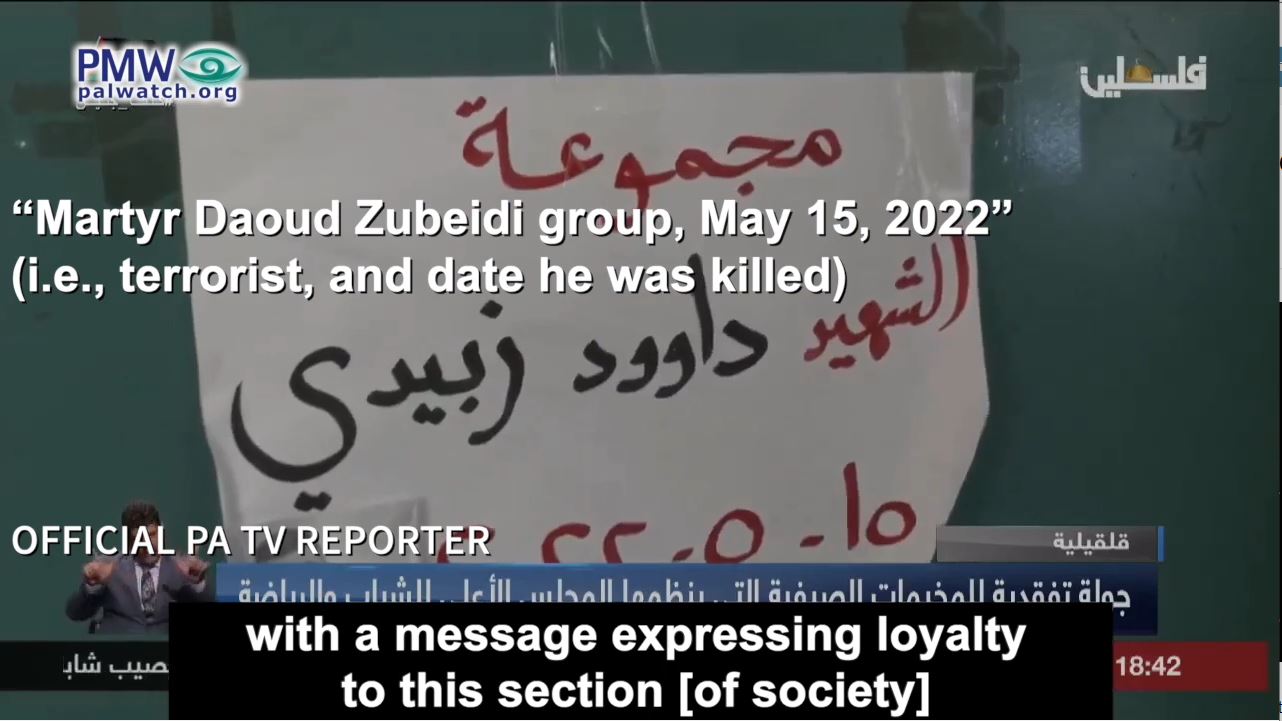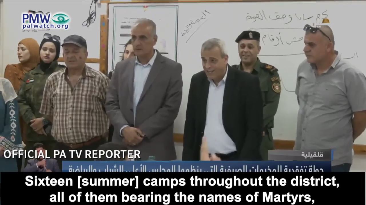 Official PA TV reporter: “Sixteen [summer] camps throughout the district, all of them bearing the names of Martyrs, with a message expressing loyalty to this section [of society] that has sacrificed and watered the land of the homeland with its blood, for freedom and liberation from the occupation.”