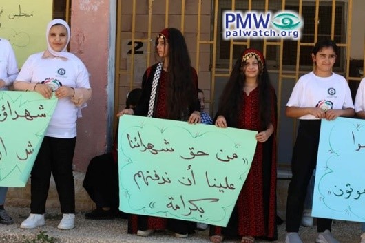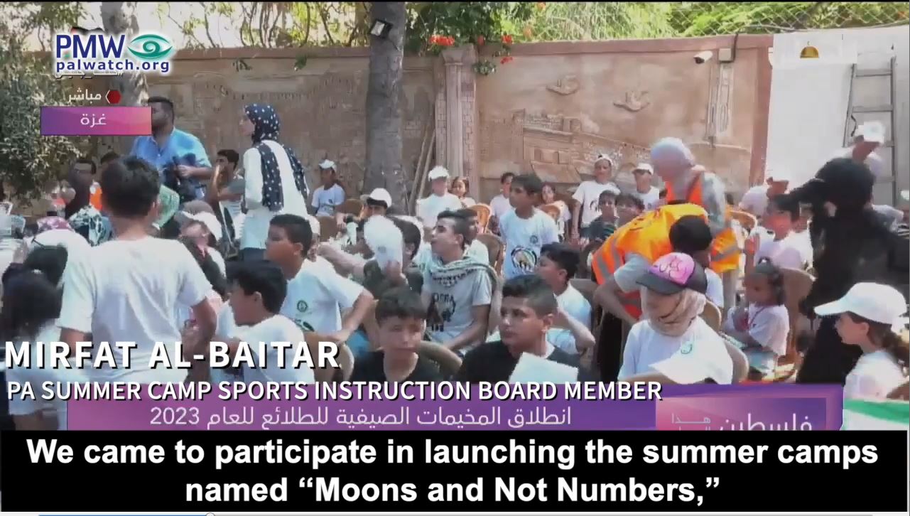 Accordingly, the slogan the PA chose this year for all the summer camps was “Moons and Not Numbers,” with the goal to teach 65.000 teens aged 13-17 to admire terrorists. Palestinian Media Watch has exposed that the PA glorifies terrorist “Martyrs” as “moons.” “Not numbers” refers to Israel temporarily burying dead terrorists in numbered cemeteries until the bodies are transferred to the PA at a later date.