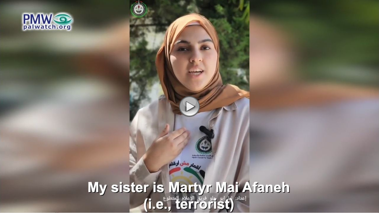 Girl: “My sister is Martyr Mai Afaneh (i.e., terrorist).”