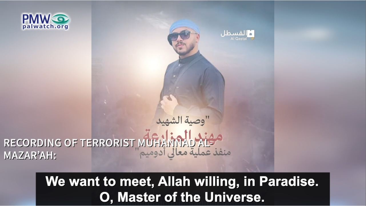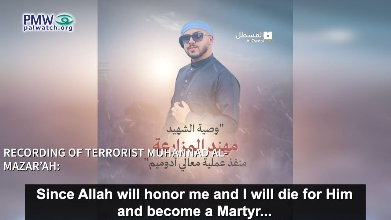 In the recording left by terrorist Al-Mazar’ah, he praised “prayer and Jihad” – holy war – and expressed his wish to “meet Allah in Paradise.” He also stated that he would “die for Allah and become a Martyr”: