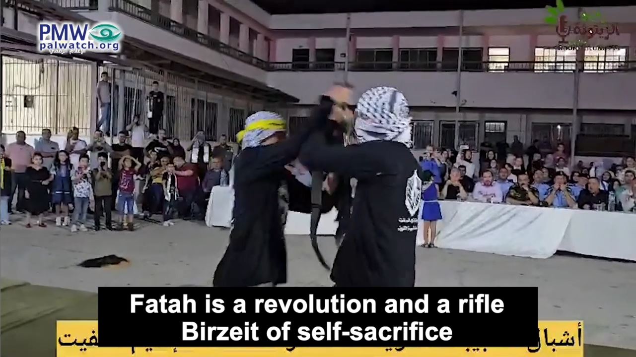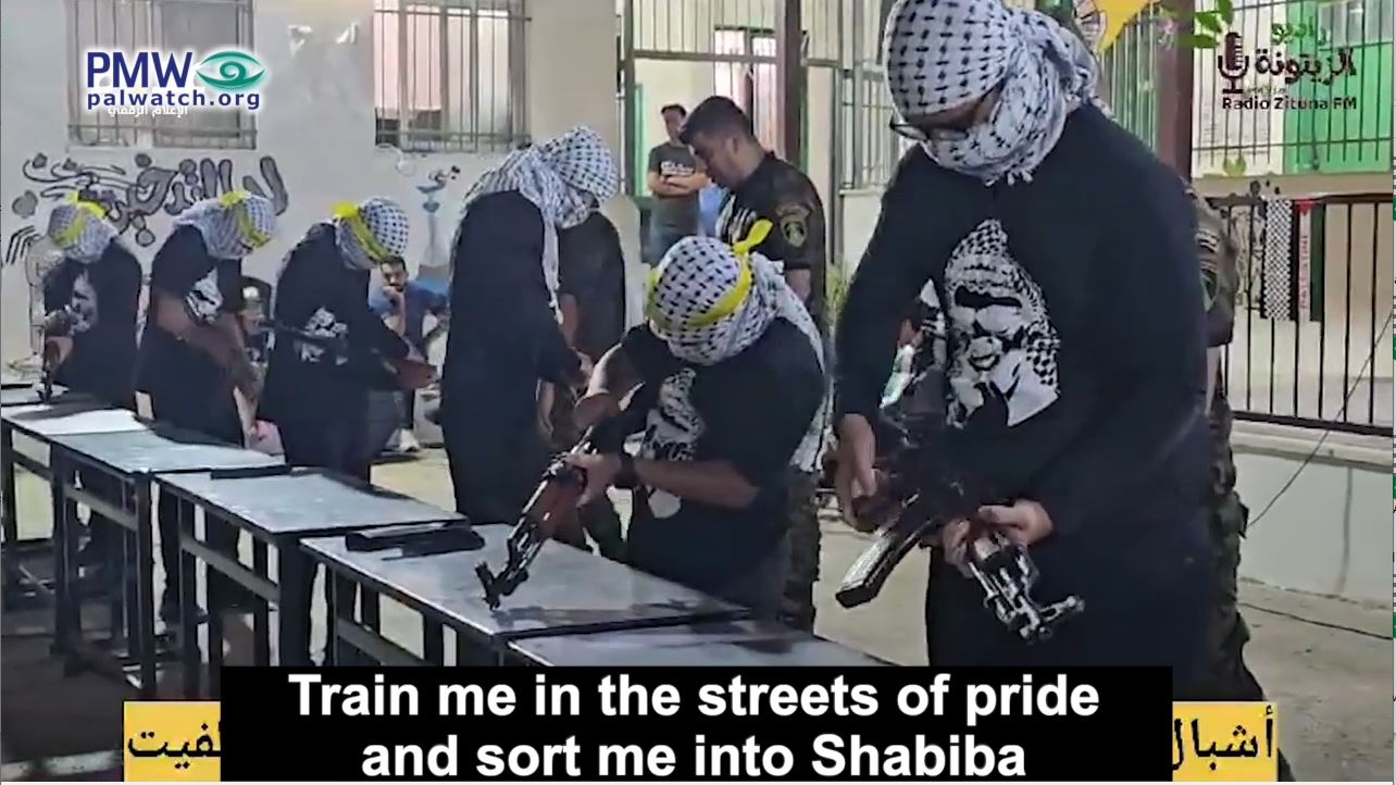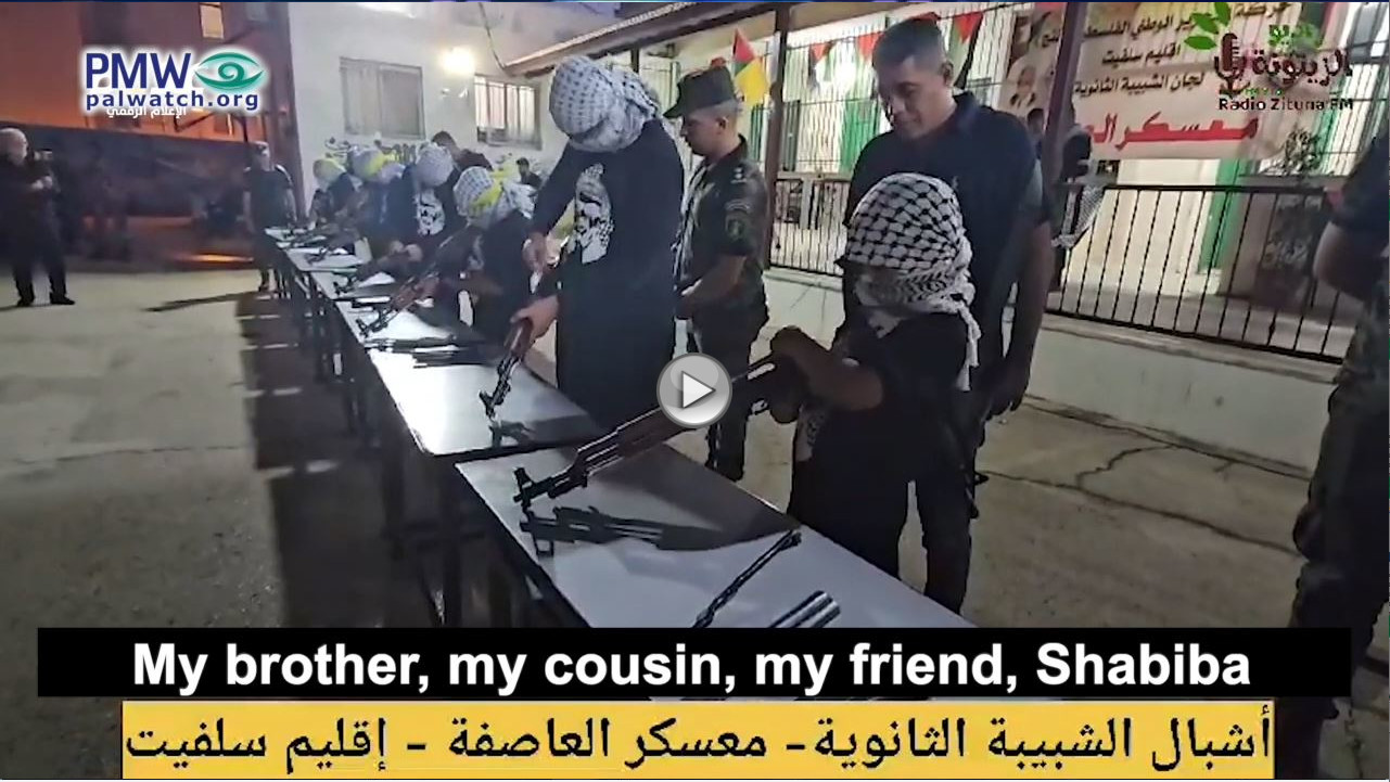Posting a video from the graduation ceremony of a Fatah summer camp for boys – “lion cubs” – Abbas’ Fatah Movement provided a glimpse of what goes on in these camps. The video from the camp for high school kids, which is accompanied by a song promoting “revolution and a rifle,” shows that masked teenage boys wearing yellow Fatah headbands were taught to handle and assemble Kalashnikov assault rifles, and were trained in close combat: