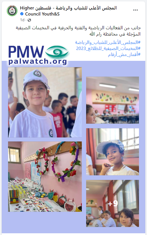 Posted text: “Pictures from the sports, art, and handicraft activity at the postponed [PLO Supreme Council for Youth and Sports] summer camps in the Ramallah district”