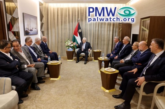 Posted text: “[PA] President [Mahmoud Abbas] receives a delegation of the Popular Front [for the Liberation of Palestine] (PFLP) that is participating in the conference of secretary-generals [of Palestinian factions].