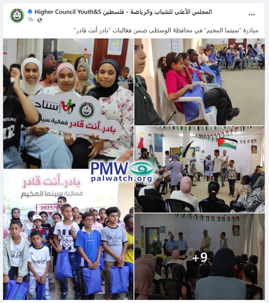 Posted text: “The ‘Camp Cinema’ initiative in the central [West Bank] district as part of the ‘Initiate, You Can’ activities”