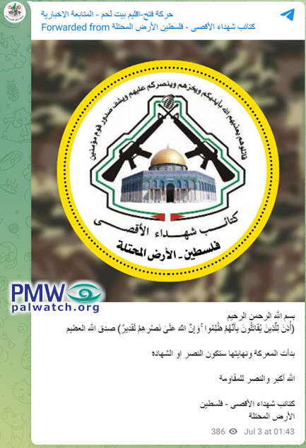 [Fatah Movement – Bethlehem Branch, Telegram channel, July 3, 2023]