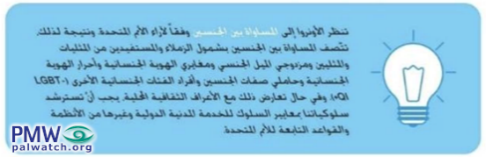 "[Part of] UNRWA’s attempts to spread ‘the culture of perversion’ in Palestinian society as one of the principles of equality.”