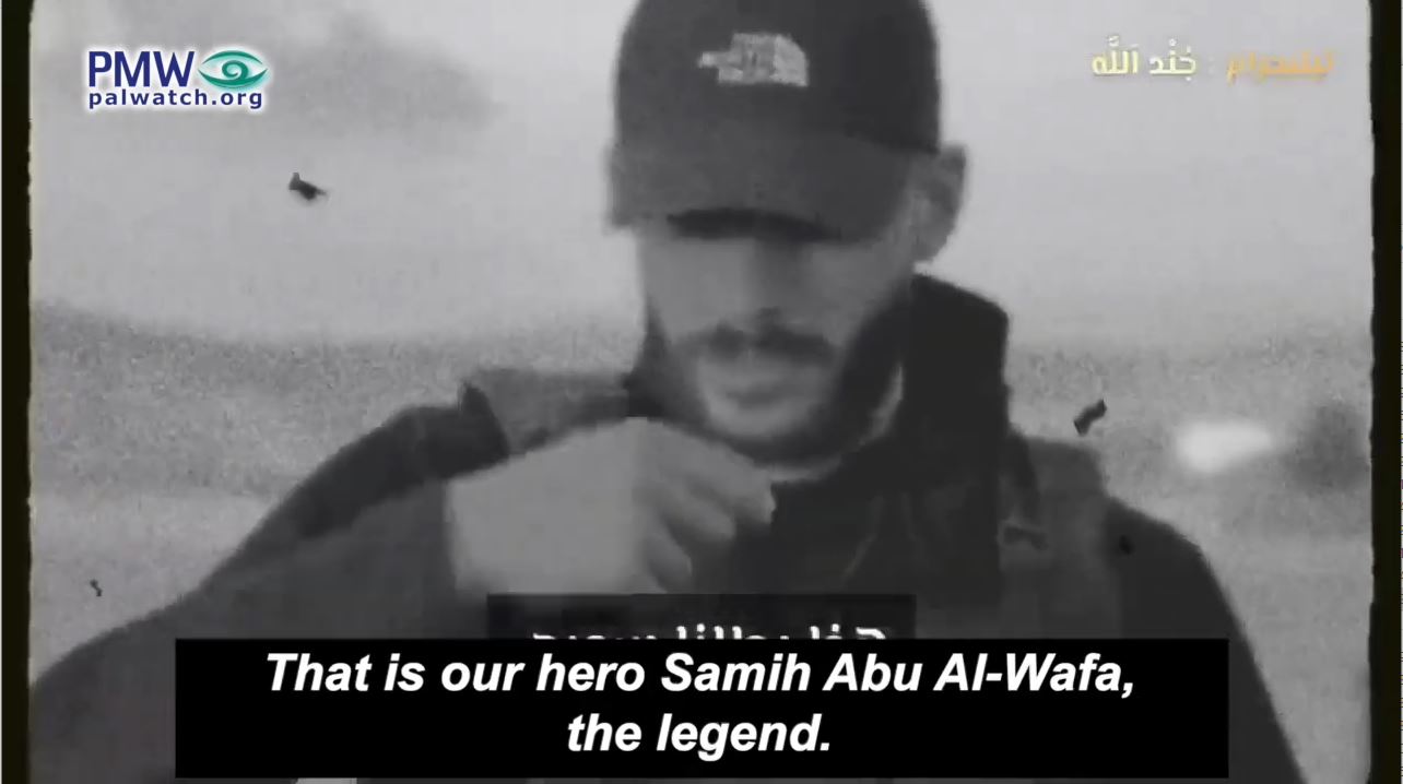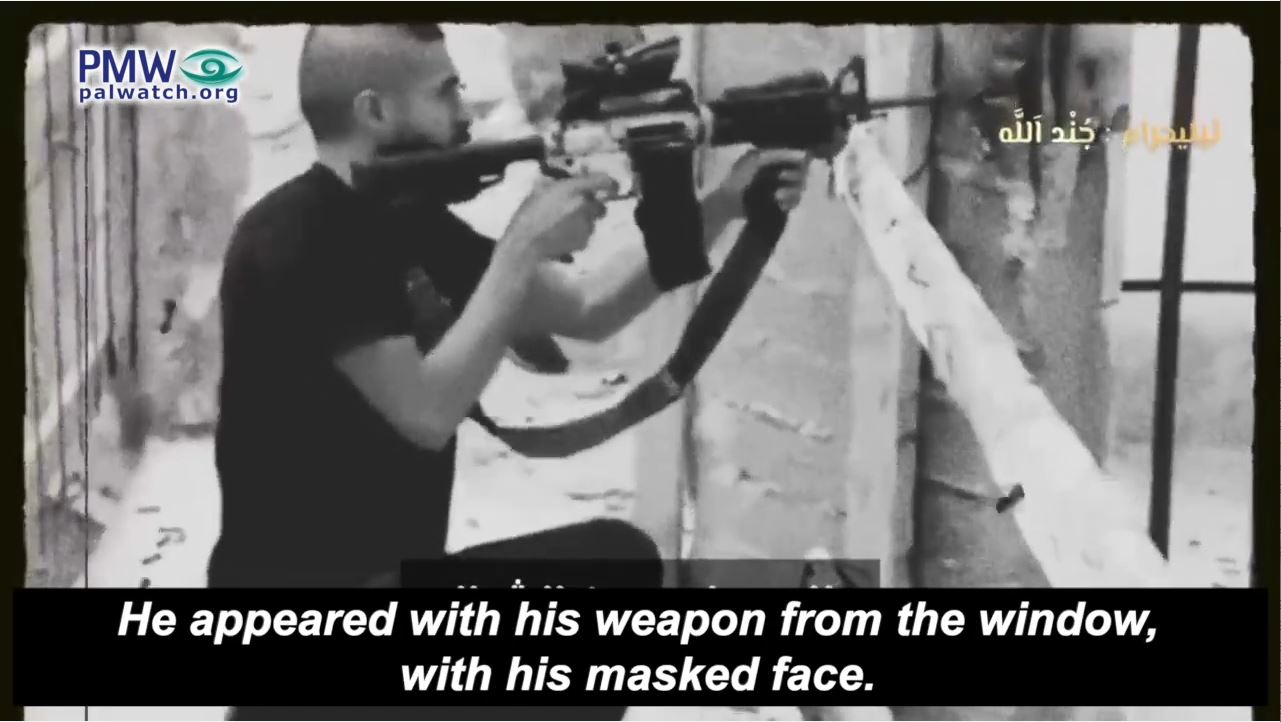 Palestinian Media Watch has exposed numerous times that the PA and Fatah routinely glorify and praise terrorists. Another recent Fatah “hero” and “legend” was terrorist shooter Samih Abu Al-Wafa who ambushed Israeli soldiers. This video posted by Fatah shows pictures of terrorist Samih Abu Al-Wafa, including one of him leaning out of a window while another man holds his waist and aiming an assault rifle to shoot at Israeli soldiers. A song glorifying him as “hero” and “legend” is played in the background: