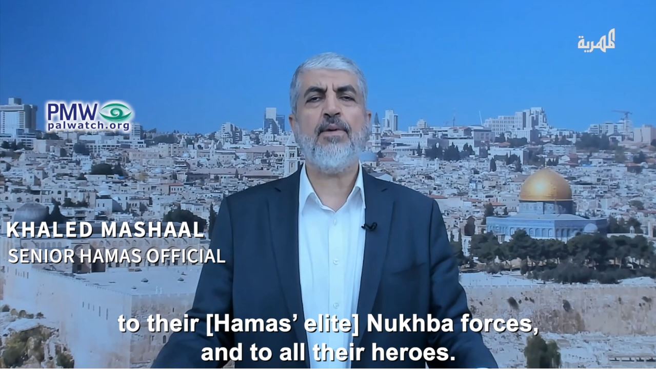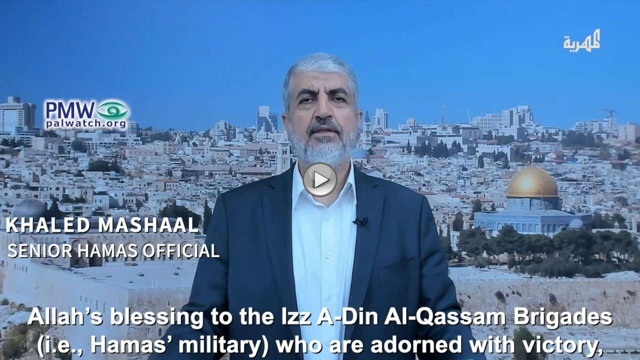 Senior Hamas official Khaled Mashaal made a special speech to celebrate Hamas’ horrific atrocities. He sent “Allah’s blessings” to all the Hamas leaders involved in the planning of the Hamas pogrom, specifically mentioning Muhammad Deif and Yahya Al-Sinwar and “to everyone who prepared, organized, arranged, and made this dream come true… They brought about this glory.”