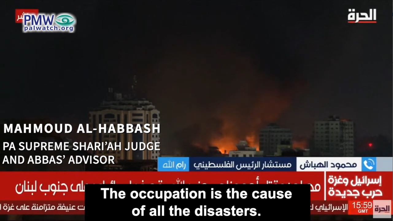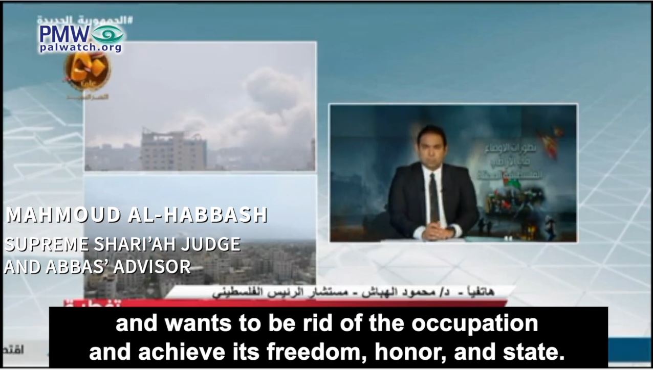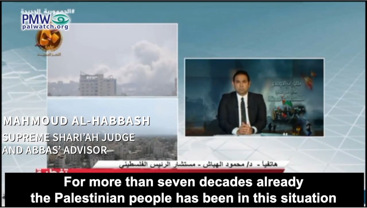 Supreme Shari’ah Judge and Abbas’ advisor Mahmoud Al-Habbash: “[Israel] doesn’t want to understand that the cause of everything is the occupation’s (i.e., Israel's) existence. Once the occupation (i.e., Israel) comes to an end there will be no violence or bloodshed from any side. As long as the occupation exists, they must understand that they have no hope of living securely and safely... For more than seven decades already (i.e., since Israel's establishment in 1948) the Palestinian people has been in this situation and wants to be rid of the occupation and achieve its freedom, honor, and state.”