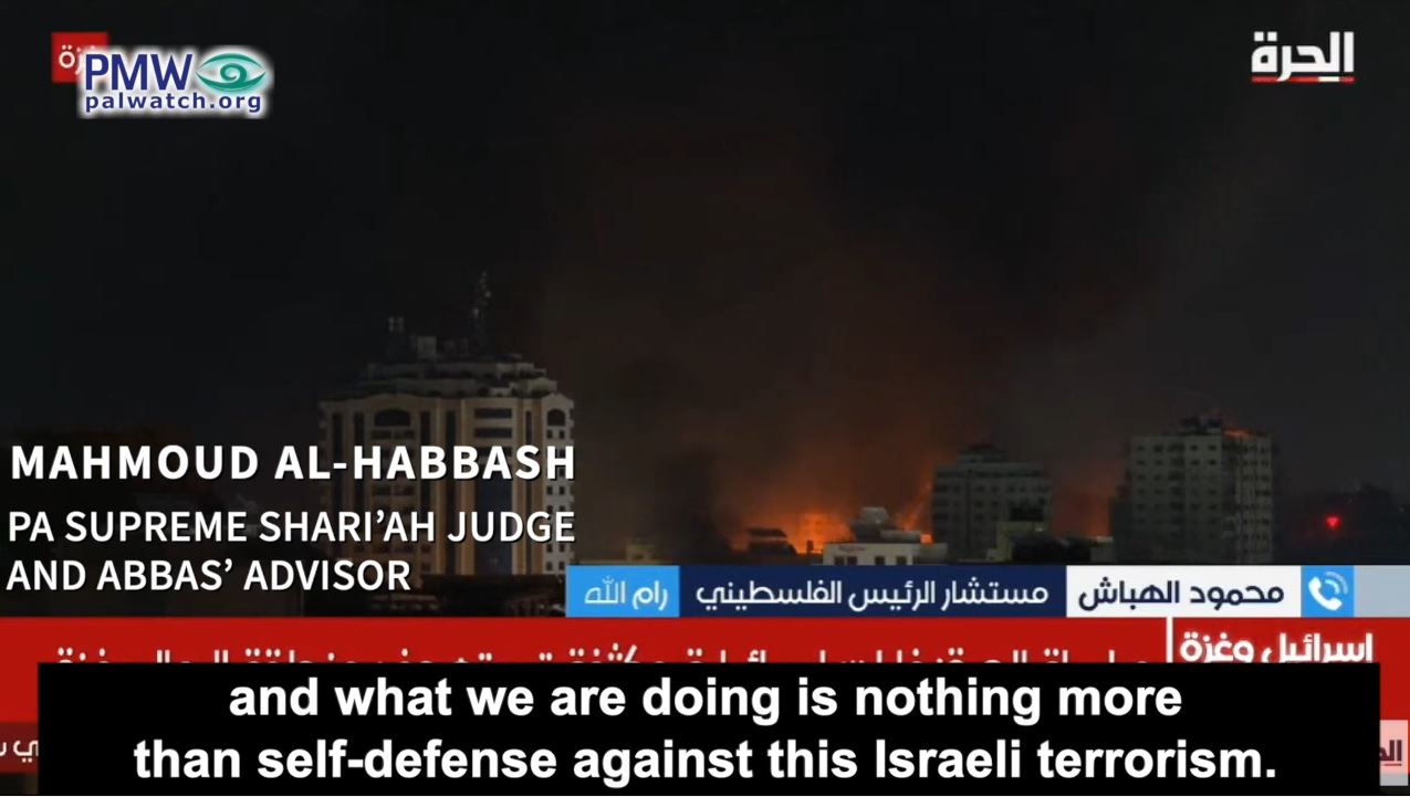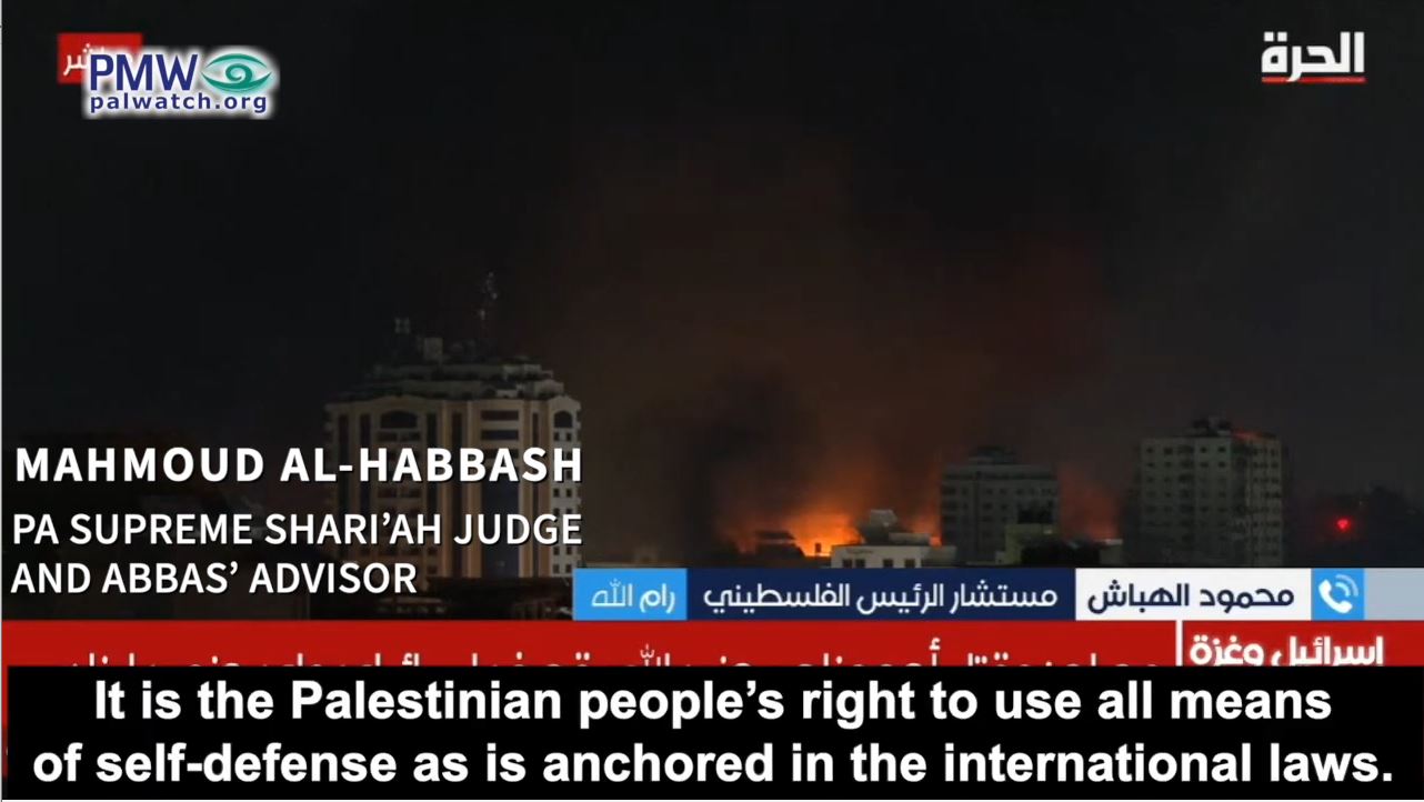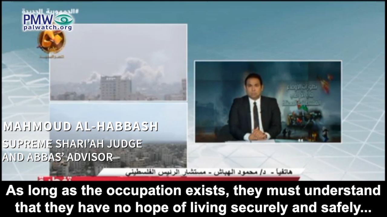 PA Supreme Shari’ah Judge and Abbas’ advisor Mahmoud Al-Habbash: “If not for this occupation (i.e., Israel) there would be no tensions, violence, and fear from any side, and there would be no bloodshed. The occupation is the cause of all the disasters. Israel claims that it is defending itself, but that’s the opposite. Israel is the one that is attacking and we are the ones who are defending ourselves, and it is our right to defend ourselves. It is the Palestinian people’s right to use all means of self-defense as is anchored in the international laws. The occupation is the aggression, the occupation is the terror, and we are the victims of this aggression and this terror, and what we are doing is nothing more than self-defense against this Israeli terrorism.”