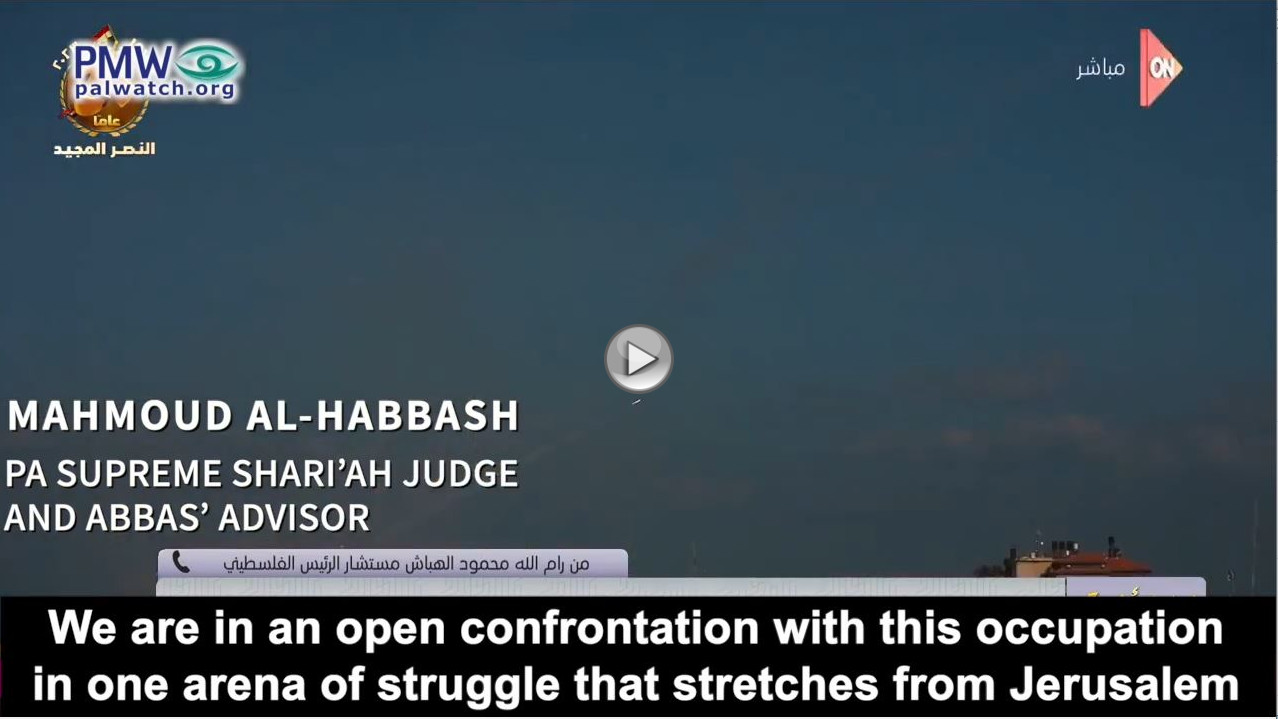 PA Supreme Shari’ah Judge and Abbas’ advisor Mahmoud Al-Habbash: “We are in an open confrontation with this occupation in one arena of struggle that stretches from Jerusalem to the West Bank, Jenin, Hebron, the Gaza Strip, every inch of the Palestinian land. We are standing against one occupation in one arena.”