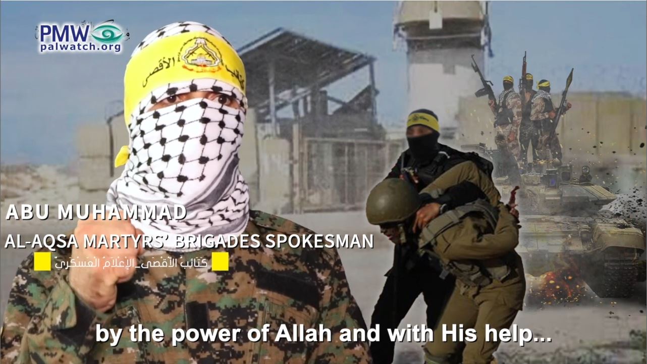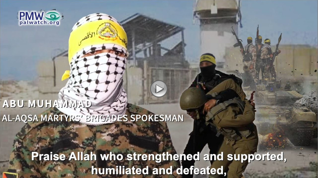 In a video posted by the Brigades, a spokesman, Abu Muhammad, thanks Allah for the massacre and for “humiliating and defeating the Zionists.” and brags that Fatah’s Brigades are “fighting” with the Gazan terror organizations and that they also carried out their own terror attacks “behind enemy lines,” meaning within Israel.