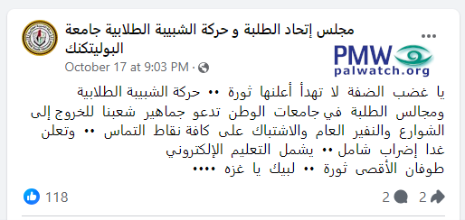 [The Student Union Council and Fatah Shabiba Student Movement at Palestine Polytechnic University, Facebook page, Oct. 17, 2023]