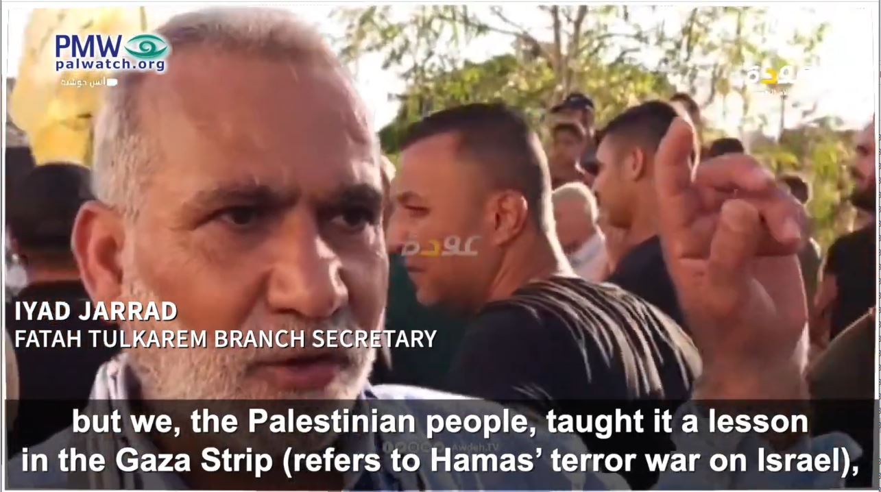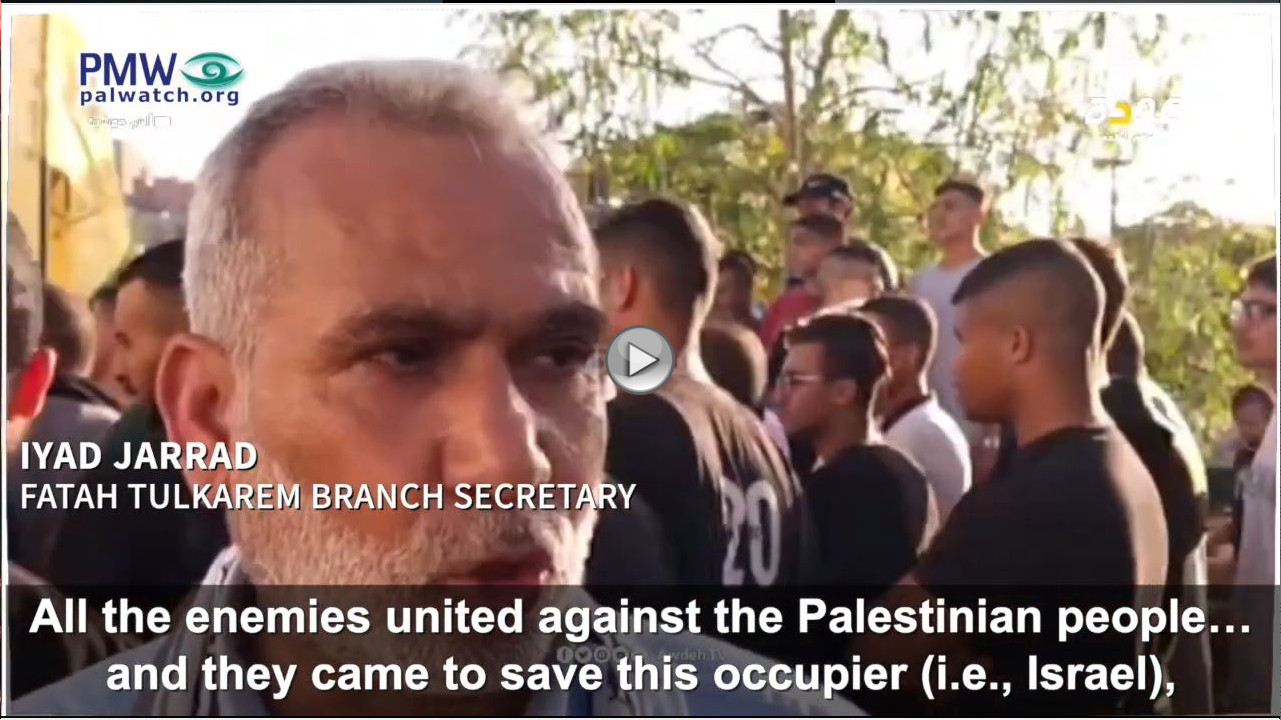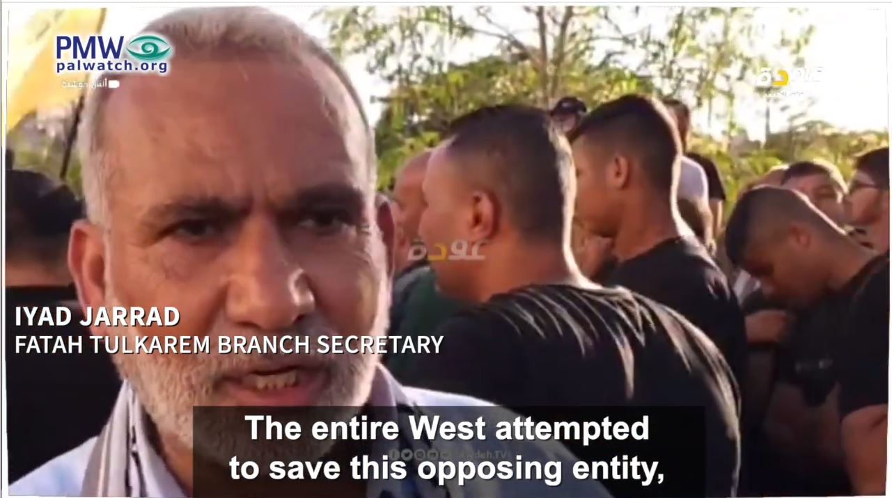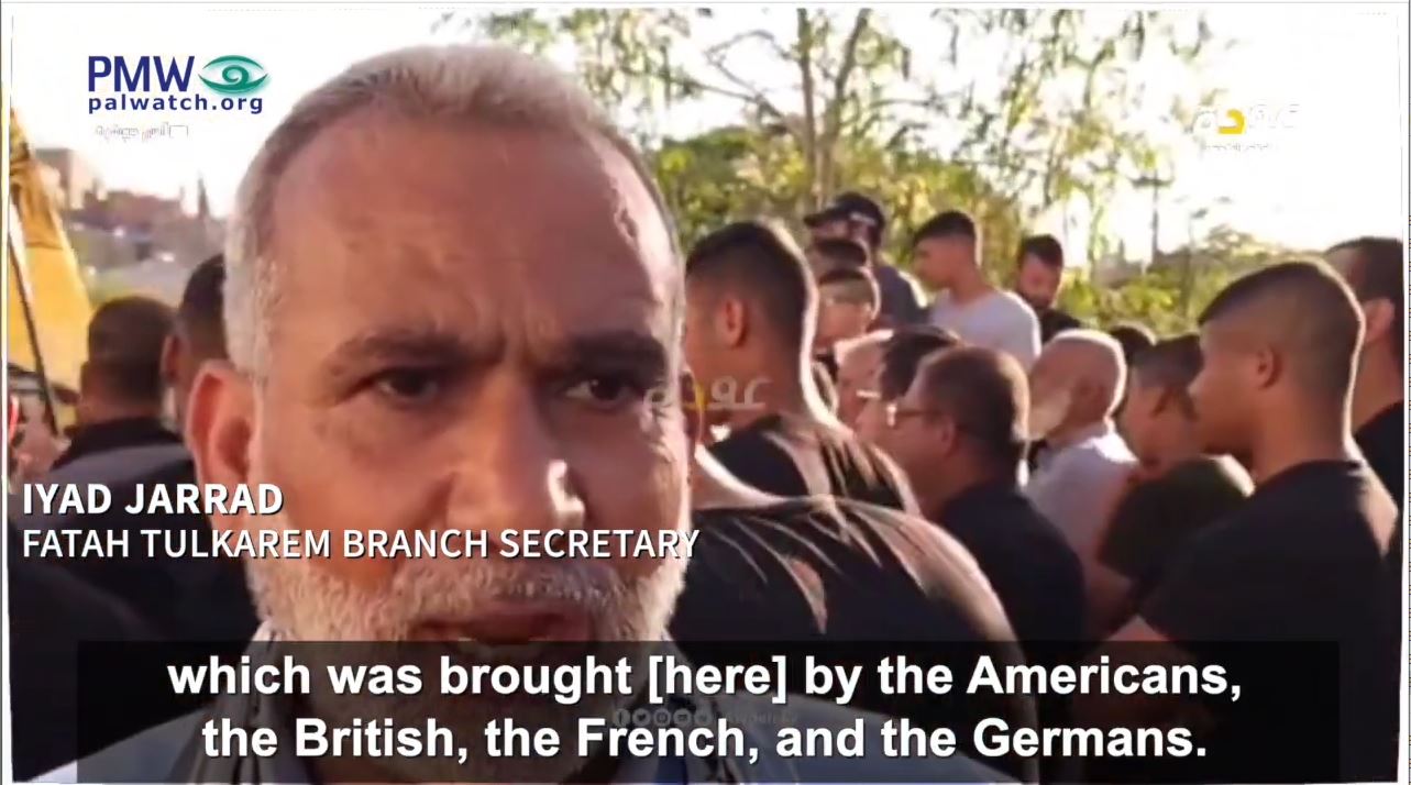 Fatah Tulkarem Branch Secretary Iyad Jarrad: “All the enemies united against the Palestinian people… and they came to save this occupier (i.e., Israel), this first thieving entity of organized terror, which was brought [here] by the Americans, the British, the French, and the Germans. The entire West attempted to save this opposing entity, but we, the Palestinian people, taught it a lessonin the Gaza Strip (refers to Hamas’ terror war on Israel), the West Bank, Jerusalem, the 1948 territories (i.e., Israel), and the diaspora.”