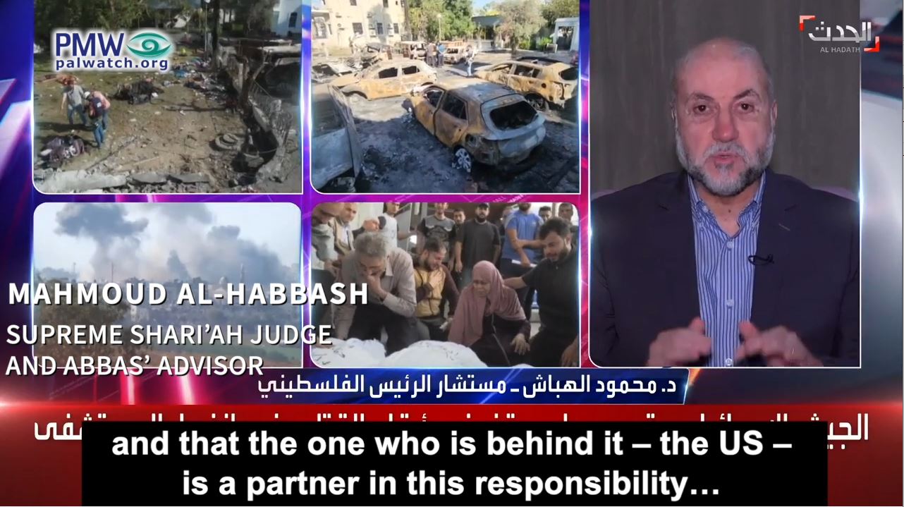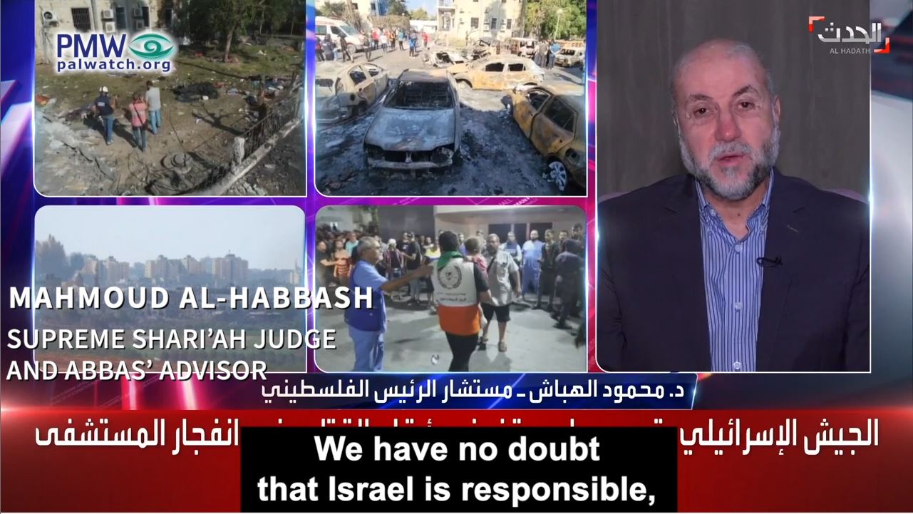 PA Chairman Mahmoud Abbas’ Advisor on Religious Affairs and Islamic Relations Mahmoud Al-Habbash: “This is not new regarding Israel and even not regarding the Americans. They are used to lies, falsehoods, and falsifications… Everyone saw the Israeli missile or the Israeli bombing hitting the hospital in a live broadcast… We have no doubt that Israel is responsible, and that the one who is behind it – the US – is a partner in this responsibility… The US is the one that is sponsoring all the Israeli crimes, and that it is the one that is defending all the Israeli crimes – not only today, during this aggression (refers to Hamas’ terror war on Israel -Ed.), but rather throughout all of history.”