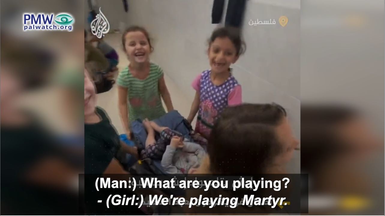 This game, and the girls’ joy is the terrifying result of decades of PA education of Palestinian children to see death for Allah and “Palestine” as an ideal and a goal. Palestinian Media Watch has documented hundreds of statements elevating death as a Martyr to a supreme and praiseworthy goal, even for children.