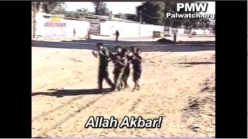 Palestinian children: " With spirit and blood we will redeem you, oh Martyr! Allahu Akbar!" …